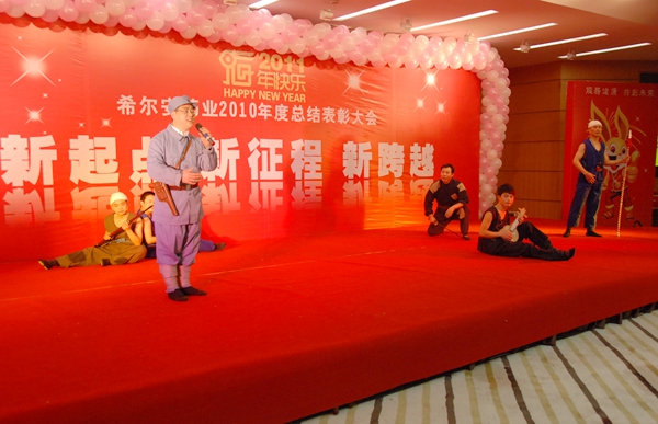最后,大会进入精彩的文娱表演阶段,由办公室主任姚世凡任总策划、总导演的这场访文娱演出精彩纷呈,高潮跌起,节目水准之高,服装道具之专业,舞台灯光、音响配合之默契,让整台演出掌声不断,令不少首次回公司参加此种大型会议的员工瞠目结舌,大为振奋。甚至连国际会展中心的服务员都私下议论:“还从来没看见哪个单位的文娱演出搞得这么好”。本次文娱演出,由希尔安药业员工自己策划、自己导演、自己排练、自己演出,没有聘请一名专业演员助阵。