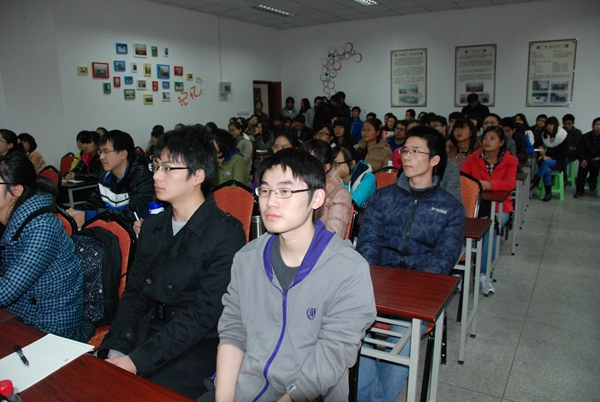 2012年12月14日,西南大学药学院希尔安班。原本25个学员的班级一下子涌入了近百名师生,教室最后一排的空地和过道都挤满了慕名前来听课的学生,不少学生没有位置,只有站着听课,挤不进教室的人,甚至站在教室外的走廊里侧着耳朵仔细听。