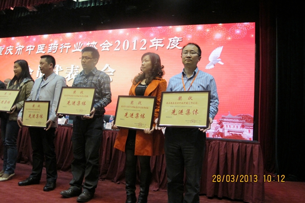大会选举产生了重庆市中医药行业协会常务理事、理事、会长、副会长、秘书长,我公司总经理陈犁再次当选为市中医药行业协会副会长,同时,我公司被评为重庆市医药行业协会先进集体,总经理陈犁被评为重庆市医药行业协会先进个人。