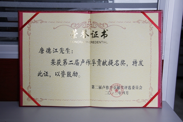 2013年4月11日,纪念卢作孚诞辰120周年座谈会在西南大学隆重召开。公司董事长唐德江荣获第二届卢作孚贡献提名奖,是20名卢作孚贡献奖、提名奖获得者中唯一的一个医药企业领导。
