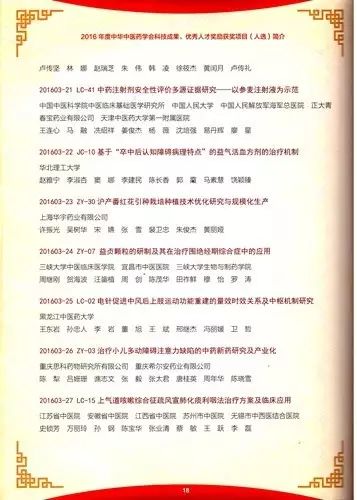 日前,2016年度中华中医药学会科学技术奖获奖项目揭晓,我司申报的“治疗小儿多动障碍注意力缺陷的中药新药及产业化”项目获得三等奖,陈犁总经理是该项目的第一完成人。