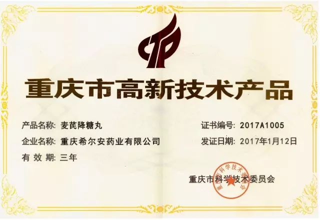 根据《重庆市高新技术产品(服务)认定管理办法》有关规定,我司组织人员积极申报,经市科委组织专家评审和公示等程序,小儿黄龙颗粒、舒肝顺气丸、金蝉止痒软膏、麦芪降糖丸等4项产品被市科委认定为2016年度重庆市高新技术产品,有效期三年。高新技术产品收入占企业周期总收入的比例不低于60%,是国家高新技术企业的认定条件之一。