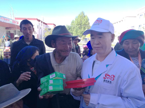 (专家为藏区群众赠药)