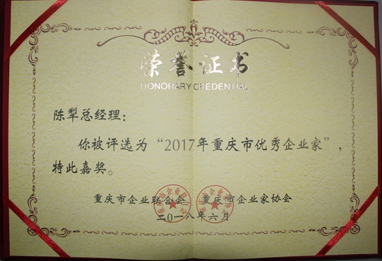 6月8日,重庆市2017年优秀企业家表彰大会在翰文大酒店隆重举行。重庆希尔安药业有限公司总经理陈犁荣膺“2017年重庆市优秀企业家”殊荣。