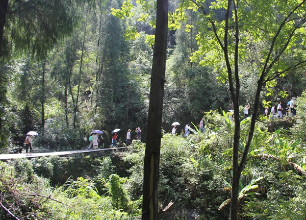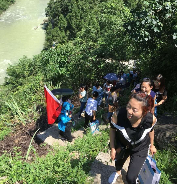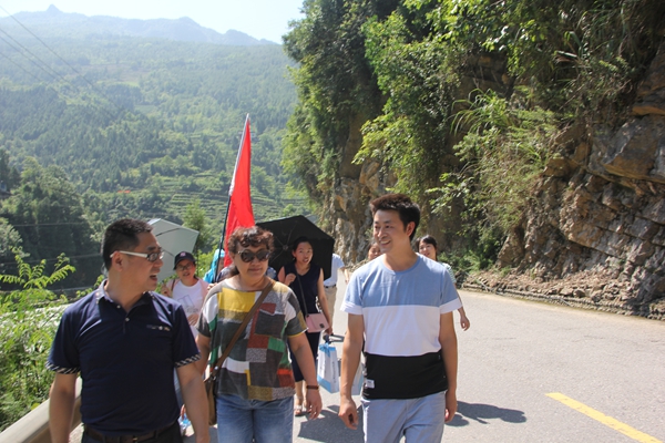 党委组织委员李可然率领的小组和谯书记他们组比起来虽然稍微近一点点,但他们却全靠爬山、步行,三个多小时后,当他们疲惫不堪地回到村委会,一个个却兴奋不已,大晒他们沿途看到的无限风光,有瀑布、有浅潭、有铁索桥,骄傲写在他们脸上,明明白白告诉大家:“这趟苦吃得值!”