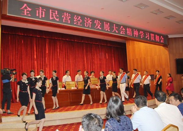 为促进民营经济快速发展,表彰先进,树立典型,中共重庆市委、重庆市人民政府发出了《关于表彰重庆市优秀民营企业和优秀民营企业家的决定》,并在大会上对重庆市优秀民营企业和优秀民营企业家进行了隆重表彰。