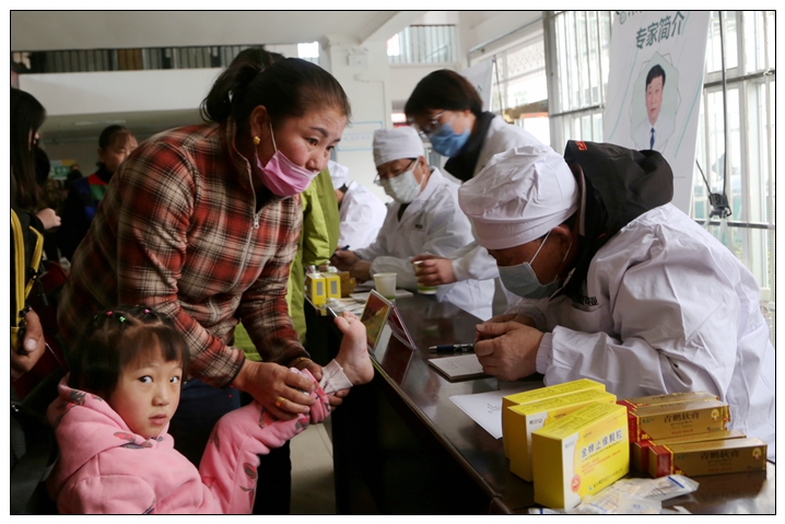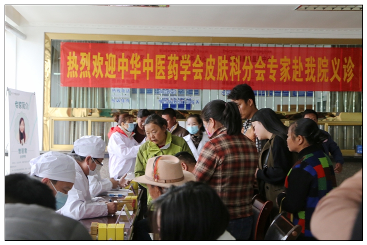 中华中医药学会皮肤科分会专家团队由湖南中医药大学杨志波教授主委、武汉市第一人民医院段逸群教授名誉主委带队,与黑龙江中医药大学杨素清教授、福建中医药大学黄宁教授、湖南中医药大学曾碧君等专家一道,前往平均海拔3100多米的林芝市。义诊当天一大早,专家团便来到林芝市,没有多余的寒暄和客套,也顾不得高原乏氧带来的各种不适反应,专家们换上工作服便投入到紧张的义诊当中。