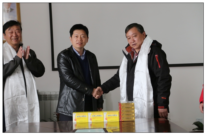 专家团为医院皮肤科的发展描绘了美好前景,也让医院领导和皮肤科医生大为振奋。座谈会中,杨主委多次强调:“我们来到这里,就是实实在在做事的”,并表示:“目前皮肤科在藏区医疗体系中还是一个短板,也是中医皮肤科专委会工作的一个空白点,专家团与院方将形成长期合作关系,帮扶藏区医院提高皮肤科诊疗水平”。会后,专家团和重庆希尔安药业有限公司向院方赠送了金蝉止痒胶囊等药物,李院长则代表院方向专家们献上了洁白的哈达。