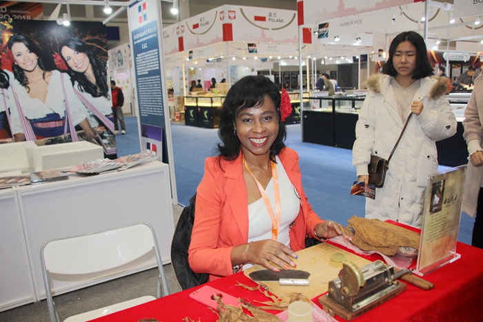 现场观众们踏着伊朗的纯手工波斯地毯,鉴赏斯里兰卡瑰丽的红蓝宝石,抚玩波兰的波罗的海琥珀,欣赏尼泊尔精雕细琢的木雕,点燃上乘的古巴雪茄,品味西班牙古老庄园的红酒,感受300多年传承的伍舒芳医药文化......