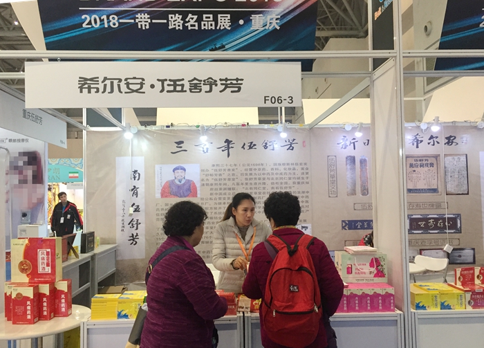 “2018一带一路名品展•重庆”于11月23日至25日在重庆国际博览中心举办。我司伍舒芳系列产品应邀参展,并在此次展会中大放异彩,赢得国内外消费者交口称赞。