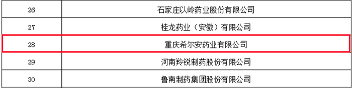 10月23日,中国非处方药物协会公布了“2019年度中国非处方药生产企业综合统计排名”。在这份权威榜单中,共100家药企上榜,重庆希尔安药业名列第28位,在所有上榜的重庆企业中高居第二。