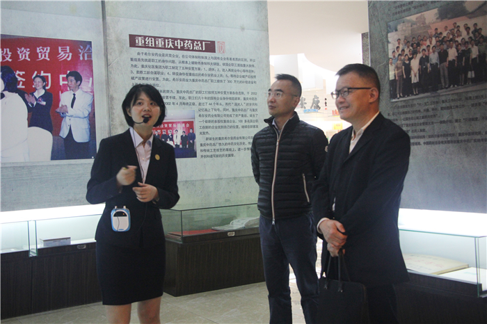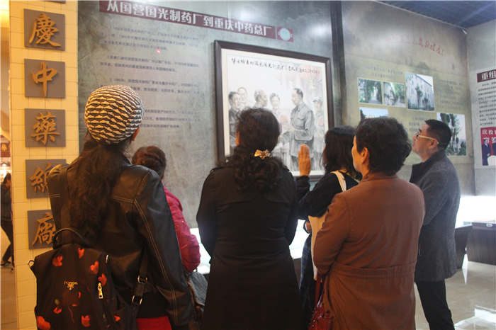 原重庆中药总厂工会主席张光文、宣传部长何万兰、销售科长杨进凤、职工代表张世英兴致勃勃参观希尔安文化厅,当看到重庆中药总厂的历史部分时,不禁感动落泪