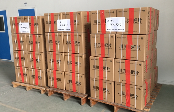 物流部打包准备发往武汉的50件川贝枇杷片