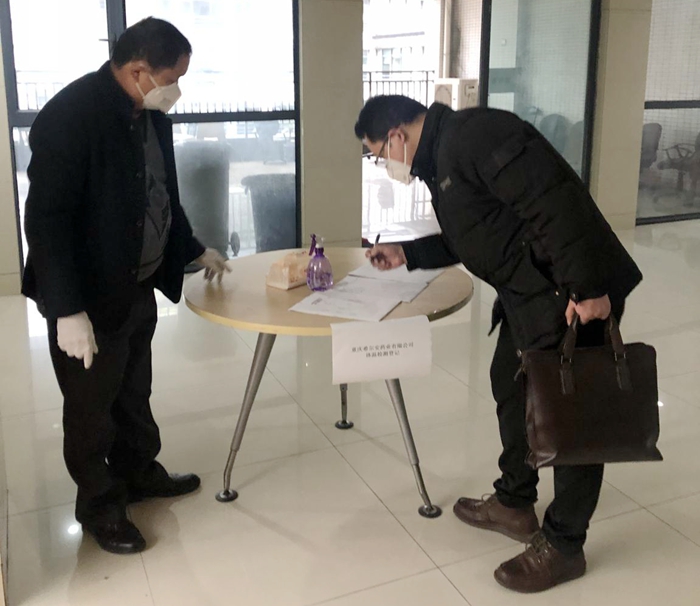 员工进出集团须严格检测体温并填表,未经集团防疫领导小组同意复工的员工不得进入公司