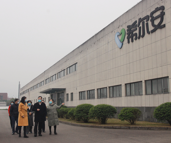 2月26日,重庆市经济信息委党组成员、副主任涂兴永等一行人到重庆伍舒芳健康产业集团(希尔安药业)现场督导复工复产疫情防控工作,合川区委常委、区政府常务副区长程卫以及合川区经济信息委、工业园区管委会等相关单位负责人一同前往,吕姗珊副总经理做公司复工复产疫情防控工作介绍。
