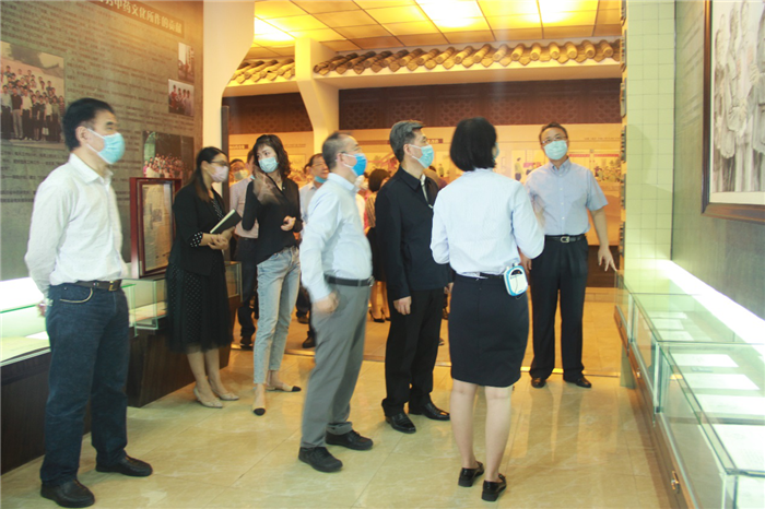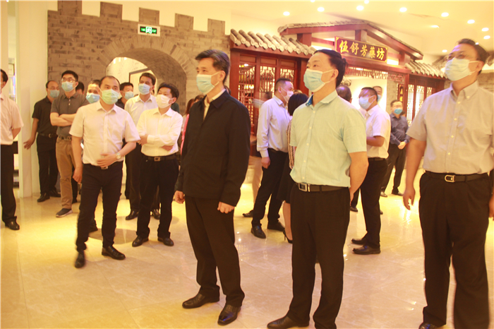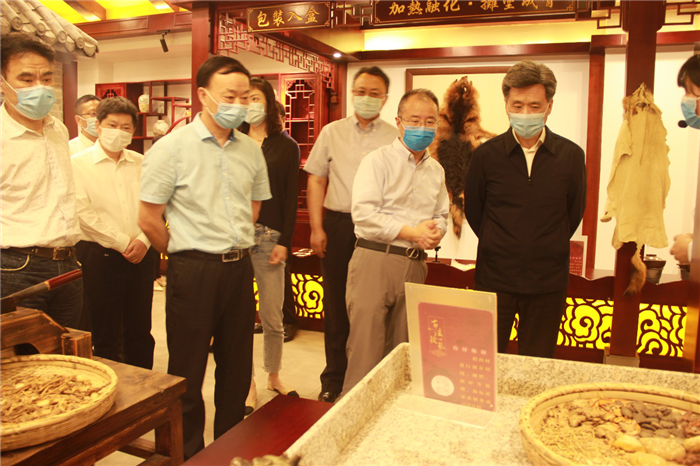 周旬主任一行沿着企业文化厅长廊,仔细听取企业文化讲解员对公司理念、愿景,以及伍舒芳起源、发展、传承和历史故事的介绍,了解了伍舒芳三百多年的中医药文化历史。