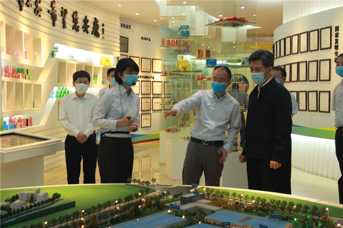 周旬主任一行首先来到公司宣传栏处,了解公司对“两法”的宣传情况。随后参观了公司的企业文化展厅,了解希尔安的发展历史、主要产品及伍舒芳传统中医药非物质文化遗产,并在公司大厅通过视频观看新建成的中成药数字化提取车间演示动画。