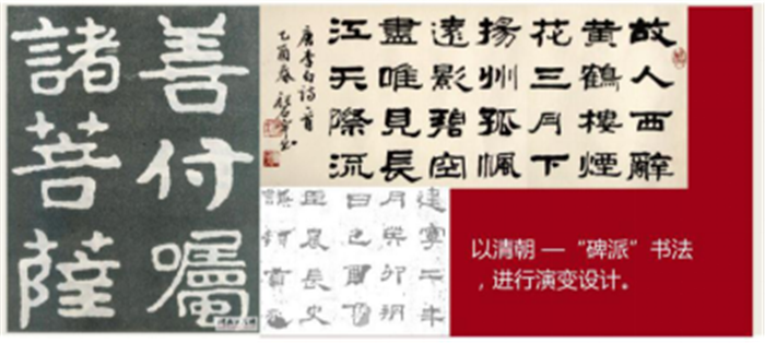 其中,“伍舒芳”三个字以清朝一“碑派”书法为蓝本进行演变设计,和“伍舒芳”起源于清朝康熙年间相对应,展现了同一时代的历史感。同时该字体兼具隶书的沉稳雄浑、气势磅礴和魏碑的刀锋刚劲、笔力深刻,给人入木三分之感,充分表达出伍舒芳320多年的悠久灿烂的历史。