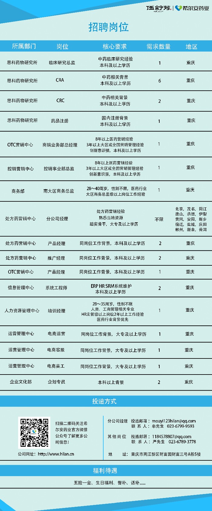 各位优秀的伙伴们,机会来啦!64个分公司经理、26个职能部门人员……90个优质岗位开放大招聘,希尔安药业出大招了!