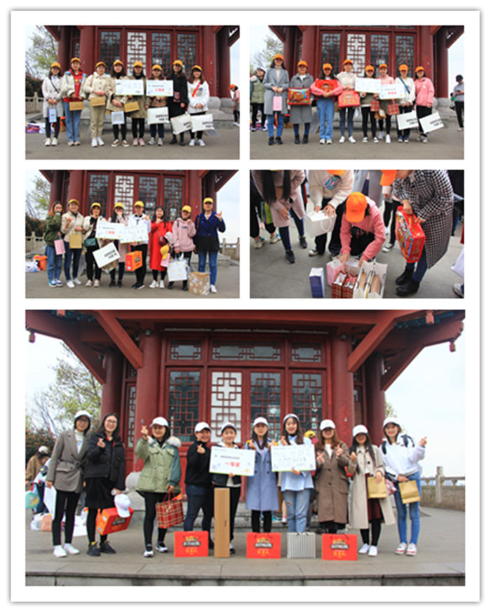 在第一个登山拍照比拼中,大家沿着蜿蜒的登山步道,你追我赶,相互鼓励,寻找最佳的拍照地点,与百花竞艳,而且创意十足,上演一幕幕“吾与花孰美”的场景。在游戏环节,赛前大家反复地练习规定动作,正式比赛时一个个争先恐后,誓夺第一,引得周围游客驻足观看,加油呐喊。大家热情高涨,置身于绿色的海洋,呼吸着大自然的气息,处处飘荡着欢声笑语。最终,经过几轮的pk后,“有钱花队”的女神们脱颖而出,夺得一等奖。