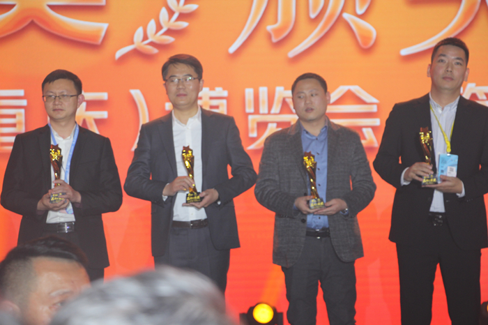 希尔安药业OTC营销中心总经理李林(左二)上台领取品牌引领奖