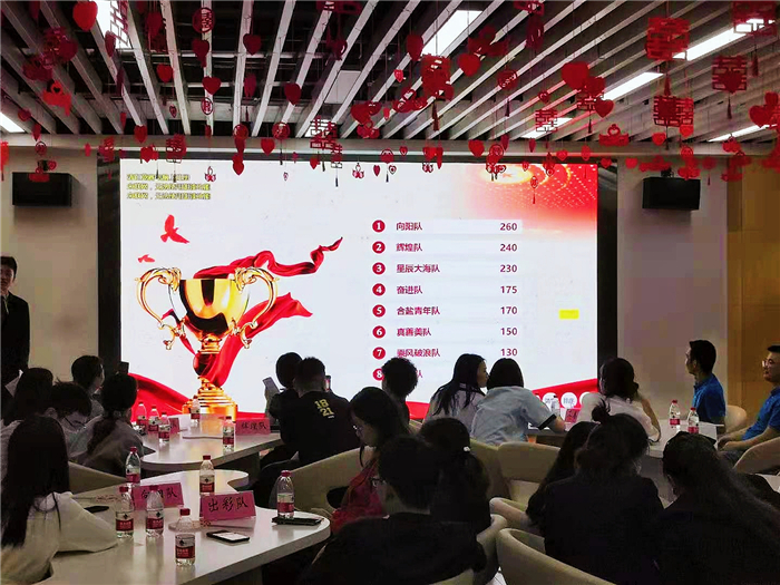 本次参赛队伍共八支。竞赛共分为“稳扎稳打、激流勇进、三阳开泰”三个环节。其中,最精彩激烈的莫过于“激流勇进”抢答环节,参赛队伍争先恐后举牌抢答,一副副志在必得的样子,展现了当代青年爱国敬党的昂扬姿态。面对竞争激烈的赛场,我司参赛队员毫不畏惧,采取稳扎稳打的答题策略,在保证答案正确的前提下举牌抢答,两轮下来获得170分,排名第三。