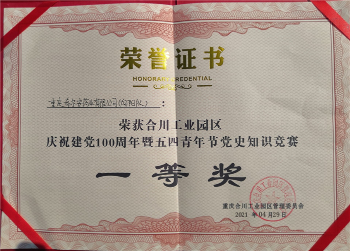 追忆党史,铭记党恩。4月29日下午,合川工业园区科技孵化大楼创客空间开展了一场别出心裁的党史知识竞赛活动,希尔安药业党委、团委派出罗意、周川杰、姚荣峰三名同志组成的“向阳队”,怀揣着“心若向阳,逆风飞翔”的信念,同来自园区各企业的代表们同台竞技,表现出强劲实力,斩获党史知识竞赛一等奖。