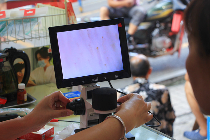 记者在现场看到,不少顾客主动要求做检测,他们中有80多岁的老人,也有二三十岁的年轻人,对于检测效果,他们纷纷表示和自己平日里看病时医生分析的几乎一样。他们有的是朋友推荐而来,有的是来复购的,大部分顾客有听了谢女士的介绍后都很爽快地购买了。谢女士除了帮助消费者免费做微循环检测,也主动帮助老人做敬老卡年检,帮助其寻找药品,讲一些养生小知识,奉上力所能及的服务和关心。