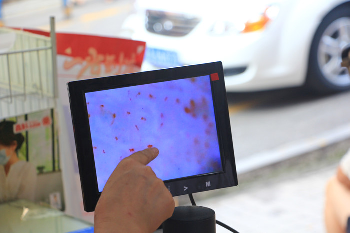 “通过观察、询问既往病情,再结合微循环检测仪检测,基本能够判断顾客是否有血瘀的情况,顾客也很乐意接受。今天上午一个多小时,就卖了60多盒血府逐瘀片,很受市场欢迎。”谢女士说。