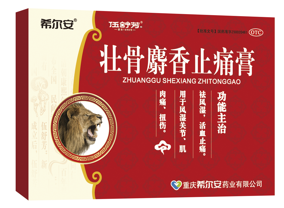 伍舒芳系列膏药由清朝太学士伍宏宪创制,始创于康熙三十七年(公元1698年),至今已有320多年的历史。曾被重庆知府赵秉渊广泛应用于军队,号称“重庆中药三大宝”,有驱风散寒、活血止痛之功效。可广泛应用于风寒麻木,腰腿、关节、肌肉疼痛,跌打扭伤,四肢不仁等等。