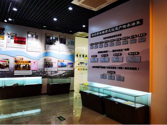 本次改造将原来“半世纪中药厂”的相关内容替换成“新时代希尔安”发展历程和伍舒芳非遗传承谱系图。