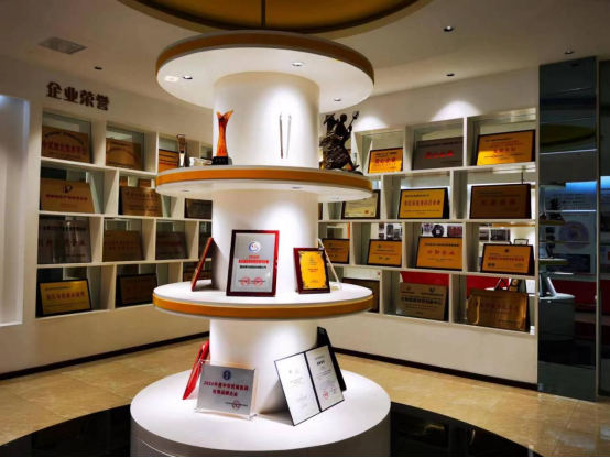 此外,我们还对“企业荣誉”展示墙进行了拓展,将原来的“大事记”展示墙拓建为“企业荣誉墙,取消了一批企业早期获得的荣誉,新增并着重展示了近年来企业获得的重大荣誉。