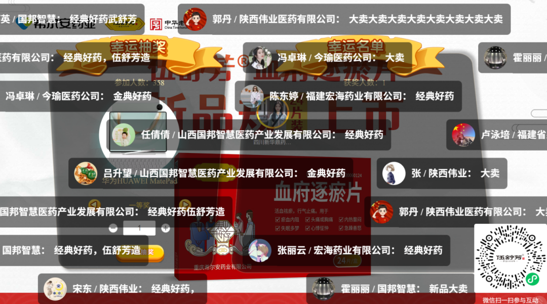 会上,除了干货满满的分享,还穿插了充满惊喜的抽奖环节,随着奖项逐一揭晓,气氛持续升温。来自全国各地的合作伙伴们,也借着这场盛会纷纷送上真挚祝福,为血府逐瘀片24片新品规的全新上市喝彩!