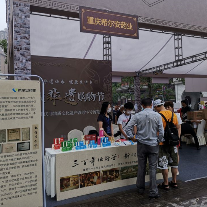 6月13日至14日,公司参加在璧山区举办的第五届重庆非物质文化遗产暨老字号博览会。此次伍舒芳携麝香追风止痛膏、麝香海马追风膏、金蝉止痒胶囊、复方枣仁胶囊、跌打七厘片、巴戟口服液、丹桃合..