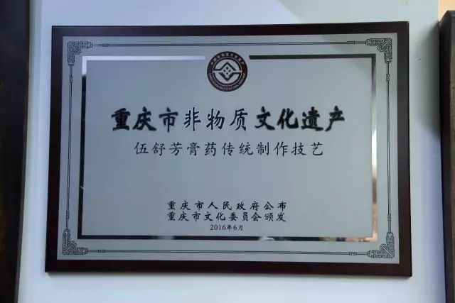 2016年6月16日,重庆市人民政府正式发布《关于公布重庆市第五批非物质文化遗产代表性项目名录的通知》,对重庆市第五批非物质文化遗产代表性项目名录予以公布,我公司《伍舒芳膏药传统制作技艺..