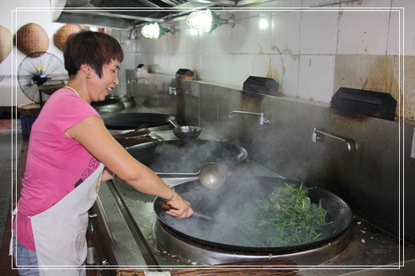 8月15日中午12点,希尔安药业合川厂区,食堂后厨。炉膛烈火熊熊,油烟升腾,酷热难当。两位大姐抡着两把大铁铲,左右开弓,一阵激烈翻炒,嫩芽跳荡,深红点缀,烟雾缭绕,异香扑鼻……几分钟功..
